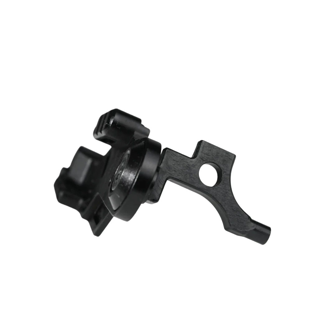 The design includes a steel base for a solid mount, an aluminum handle with two lugs for an intuitive grip, and a clamping sleeve with an M5 screw for a precise connection. The handle is equipped with a threaded hole for a dowel pin, which fixes the switch in the correct positions (single/automatic fire). The parts have base surfaces for a perfect press fit, ensuring stability and durability even under intense load.