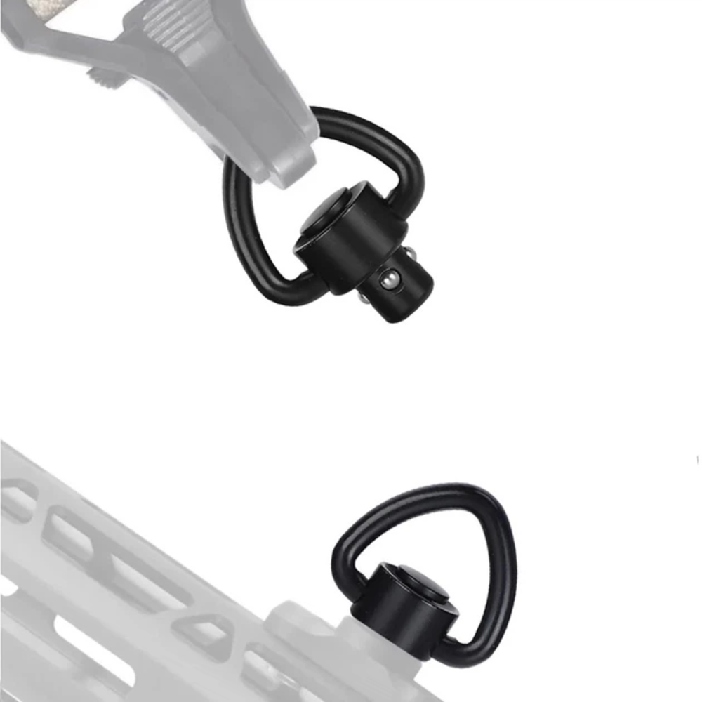Швидкознімна QD антабка трикутної форми з базою для кріплення на цівку з інтерфейсом M-LOK. Складається з антабки та посадкового гнізда: при натисканні кнопки антабка миттєво від’єднується та витягується з гнізда. Дозволяє швидко встановлювати або знімати збройовий ремінь без інструментів.