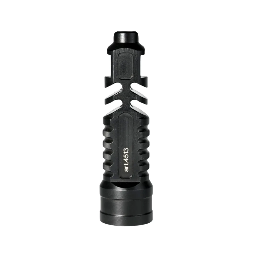 The design of the model is optimized for intensive use: the first chamber diverts powder gases to the side to reduce the recoil impulse, the second provides horizontal stabilization, the third reduces vertical barrel toss. At the end, there is a milled groove for shooting through wire barriers - the barrel is fixed on the wire for accurate shooting without shifting. Assembly and disassembly are carried out quickly without tools, with reliable fixation on the M24×1.5 thread.