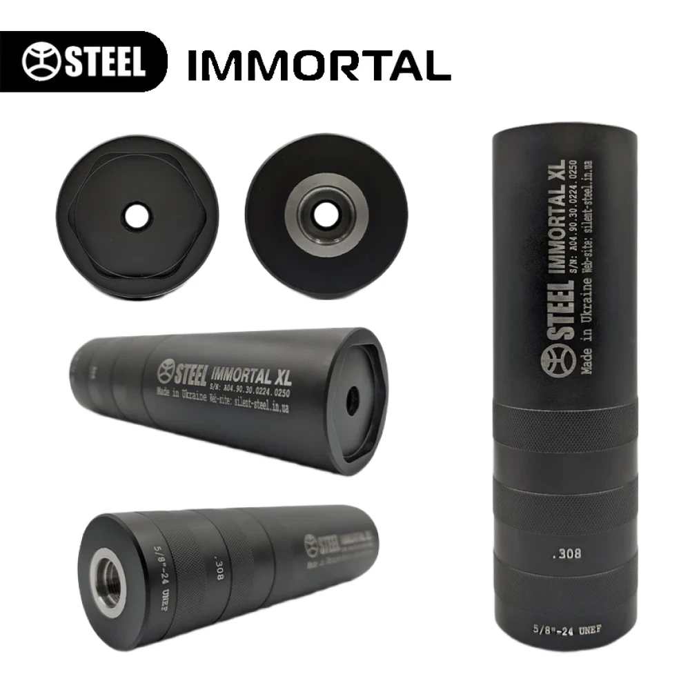 Саундмодератор IMMORTAL XL з різьбленням 5/8 x 24 — це передовий нерозбірний глушник українського виробництва, спеціально розроблений для калібру 308 WIN з акцентом на максимальну ефективність і довговічність у тактичному застосуванні. Виконаний з італійської нержавіючої сталі з покриттям Cerakote чорного кольору, що гарантує виняткову стійкість до корозії, екстремальних температур та механічного зносу, роблячи його ідеальним для інтенсивної експлуатації в бойових, польових чи тактичних умовах без компромісів у надійності.