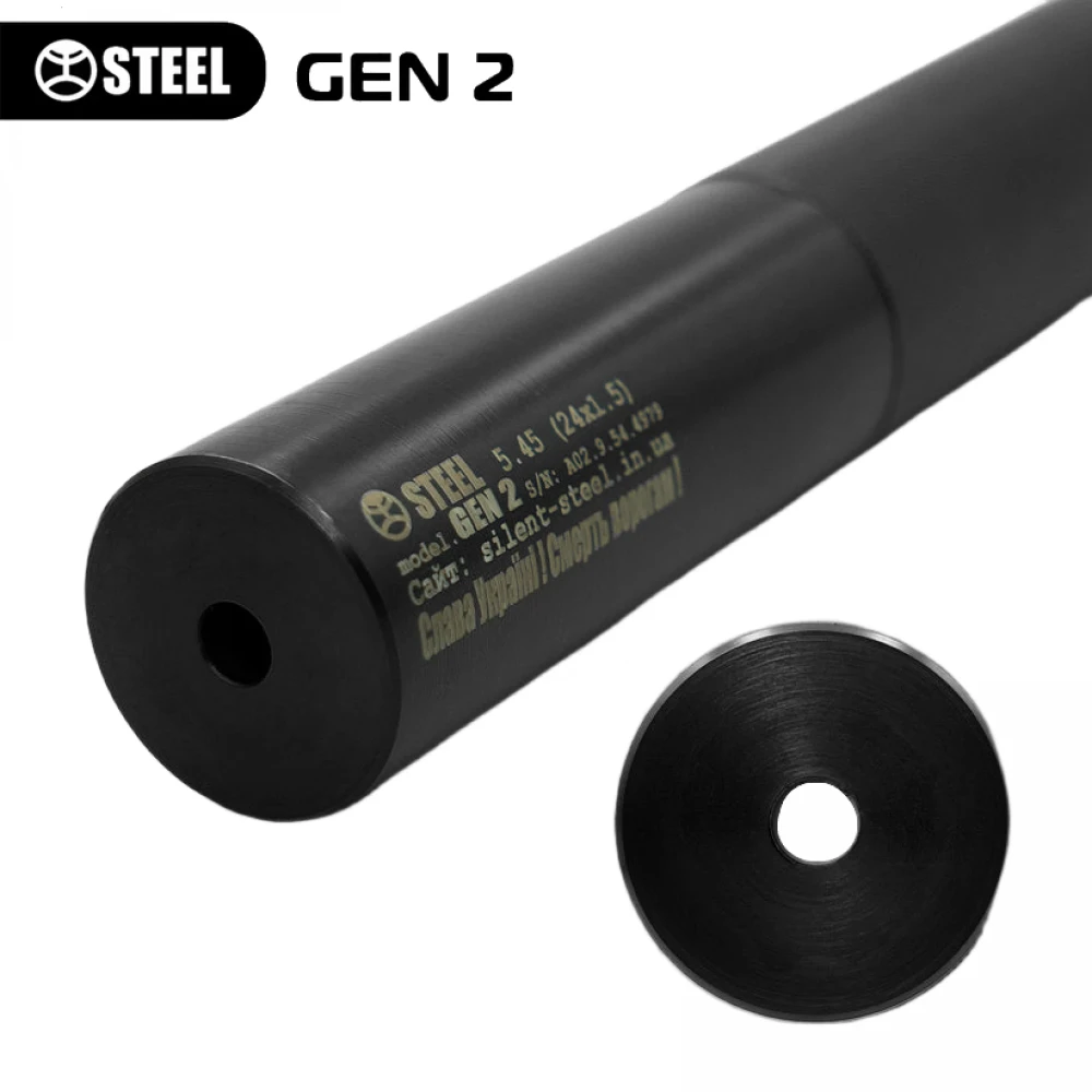 Саундмодератор STEEL Gen 2 з різьбленням 24x1.5 — це надійний нерозбірний глушник другого покоління українського виробництва, спеціально розроблений для калібру 5.45x39 мм (АК-74, АКСУ та сумісні) з акцентом на максимальну ефективність, міцність і довговічність у тактичному та спортивному застосуванні. Виконаний з конструкційної сталі з оксидним чорним покриттям, що гарантує виняткову стійкість до корозії, екстремальних температур та механічного зносу, роблячи його ідеальним для інтенсивної експлуатації в бойових, польових чи тактичних умовах без компромісів у надійності.