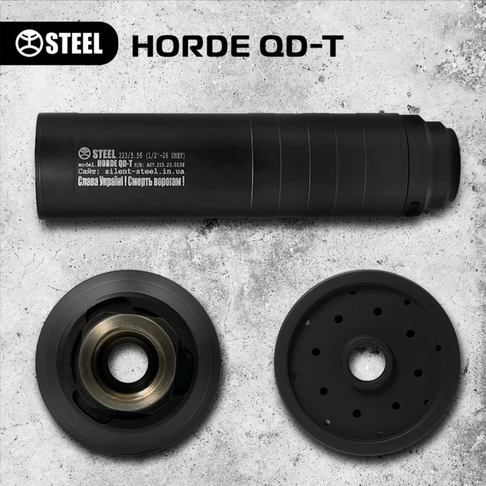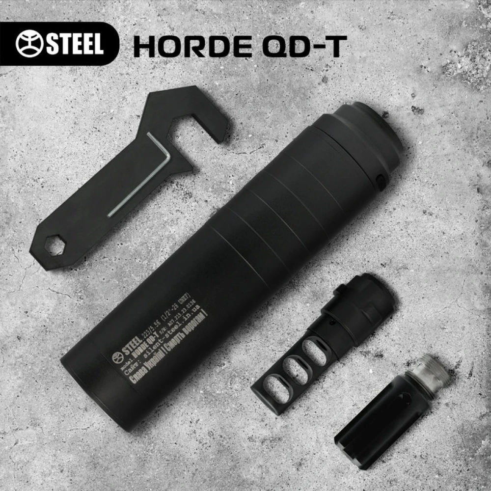 Знижує рівень шуму пострілу на 34 дБ (80% від початкового), кардинально зменшуючи акустичне навантаження на стрільця та оточуючих, що робить його незамінним для тактичних завдань, або для спортивної стрільби з фокусом на комфорт. З вагою 610 г та компактними габаритами 195 × 48 мм, HORDE QD-T .223 поєднує мінімальну вагу з високою міцністю.
