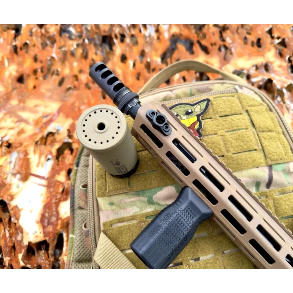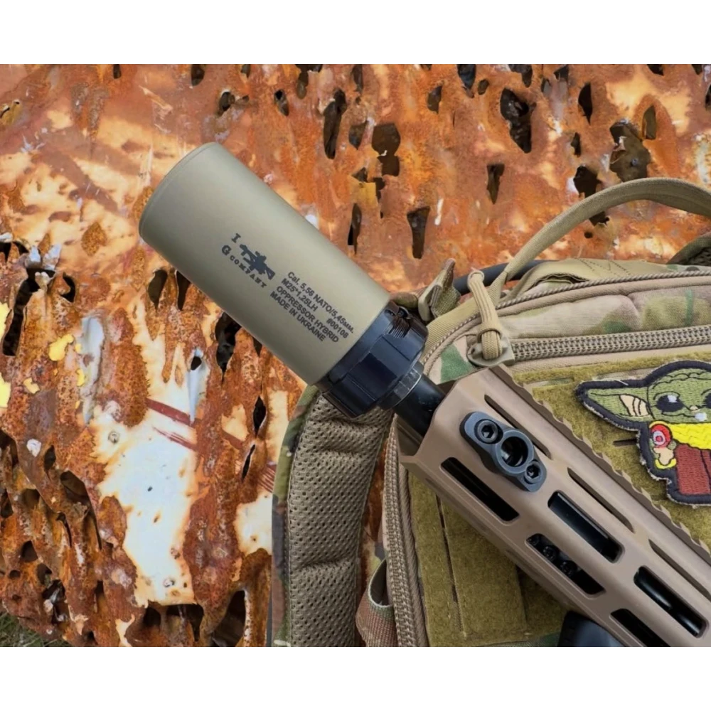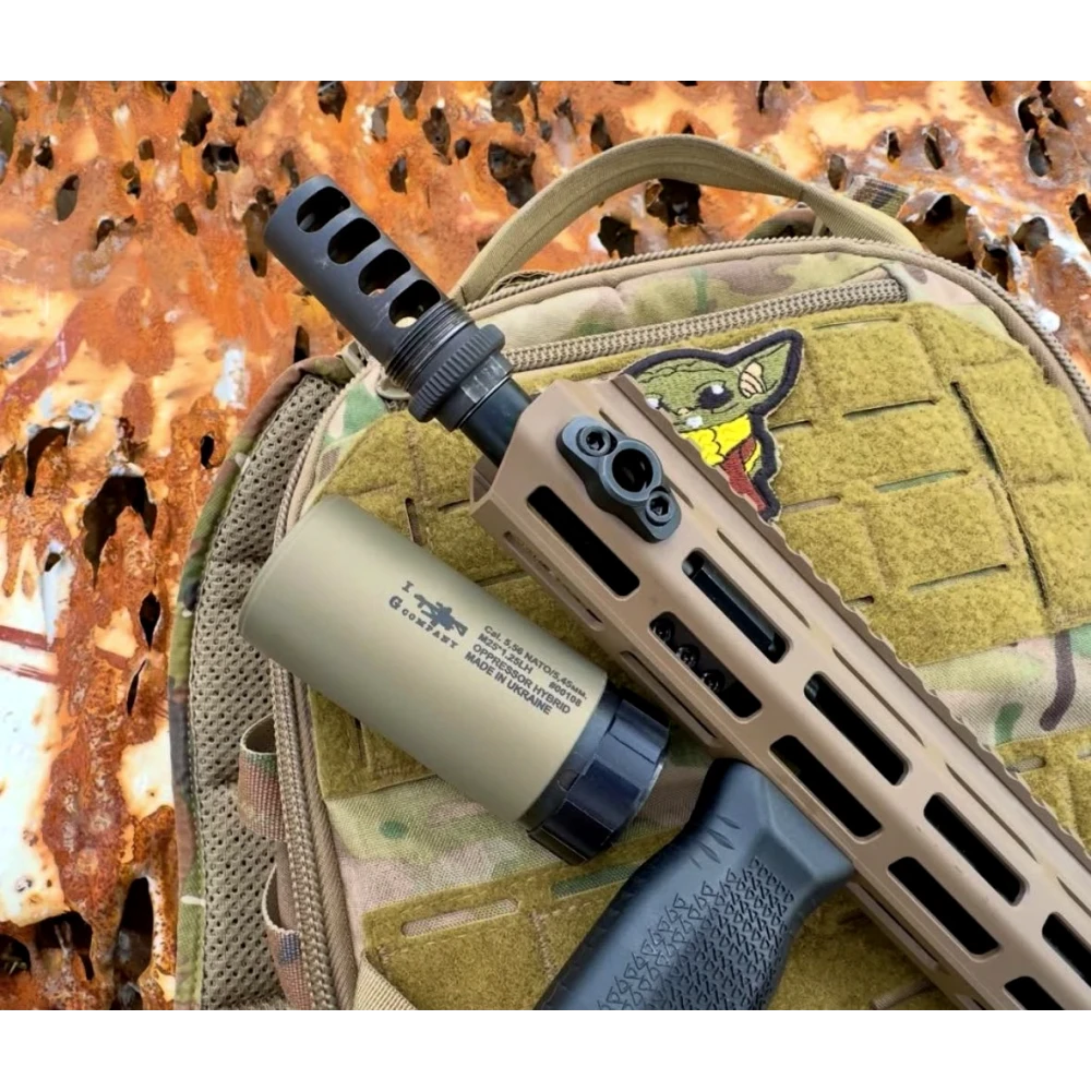 Titanium Tactical "Opressor" is a new generation hybrid device from IG-Company that redirects the shock wave and powder gases forward of the shooter. Thanks to the additional noise suppression chamber, it works much quieter than conventional DHC/flame suppressors, while retaining all the advantages of a compact frontal device.