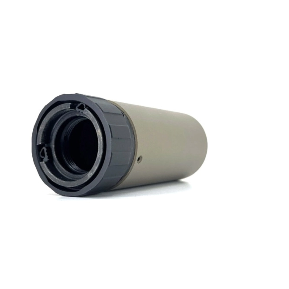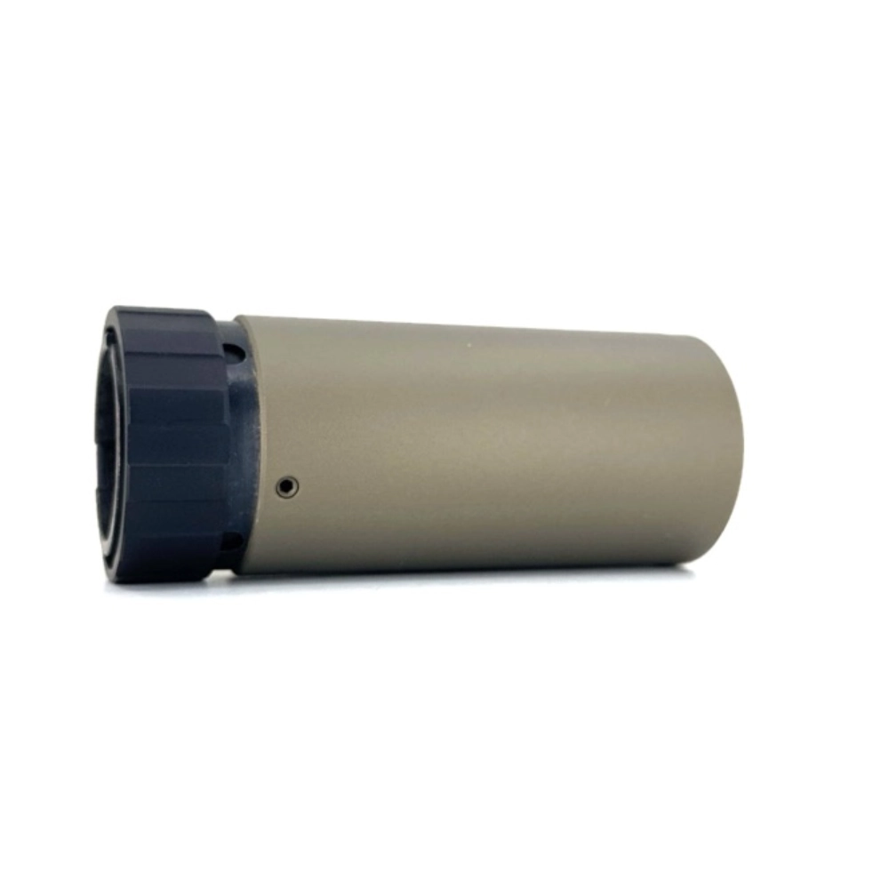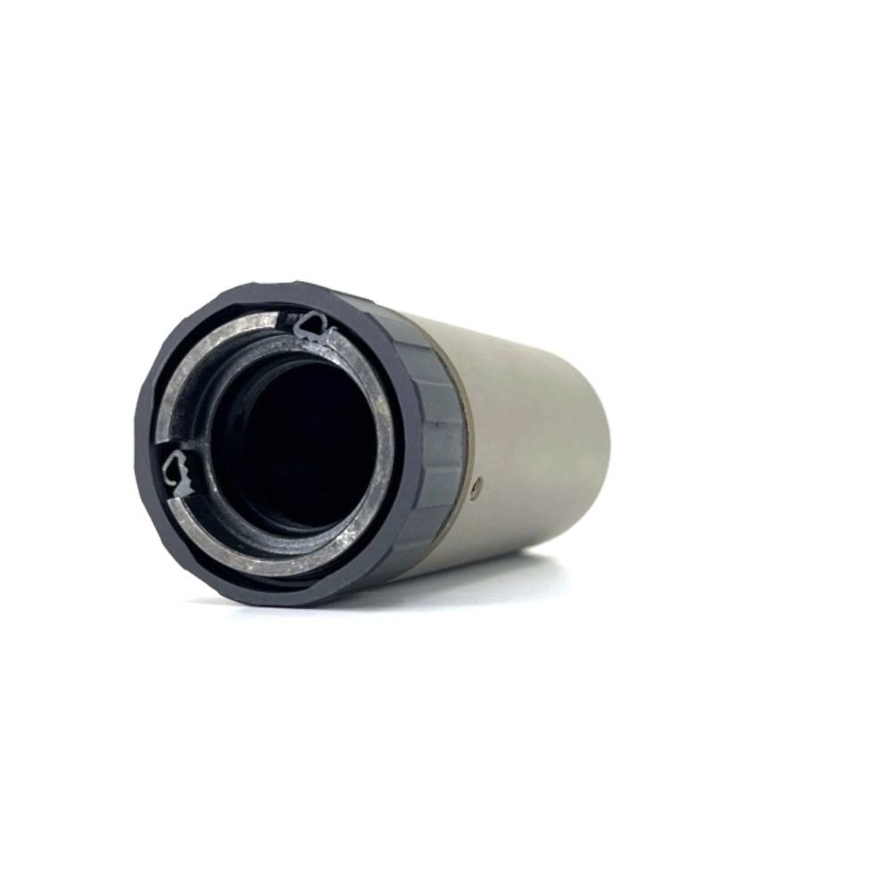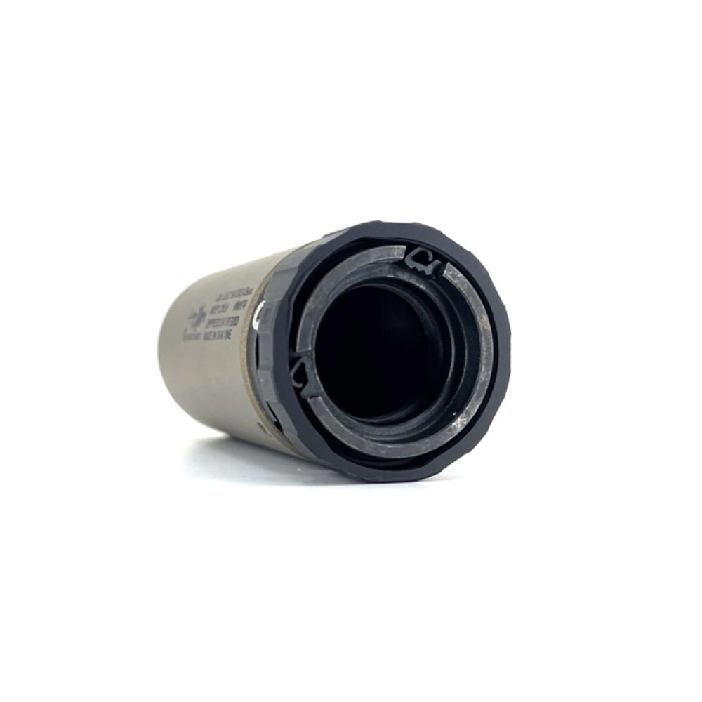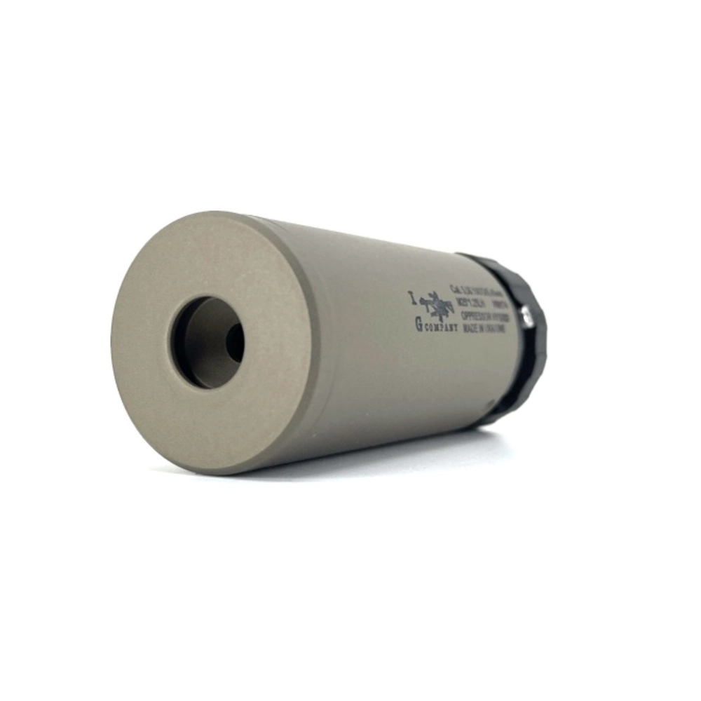 The Titanium Tactical Oppressor is a next-generation hybrid device from IG Company that redirects the shock wave and powder gases forward of the shooter. Thanks to the additional noise suppression chamber, it operates much quieter than conventional DHC/flame suppressors, while retaining all the advantages of a compact frontal device.