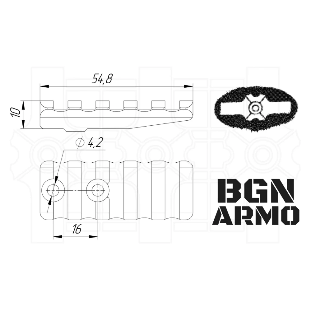 Компактна низькопрофільна планка BGN ARMO - ДКМ Picatinny H10-5S
