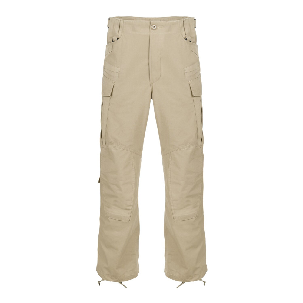 Helikon-Tex® SFU NEXT® Pants – це вдосконалена версія польових штанів Special Forces Uniform™. Виготовлені з натуральної бавовняної тканини зі спеціальним зміцнюючим плетінням (Ripstop). Об’єм талії регулюється за допомогою хлястиків на липучках. Над передніми кишенями пришиті петлі з D-кільцями для кріплення карабінів або інших аксесуарів. Кишені Cargo додатково защіпаються на ґудзик та доповнені двома внутрішніми відділеннями для дрібних предметів, які фіксуються за допомогою еластичної стрічки. Тильні сторони штанин посилені подвійним шаром тканини. Уніформа SFU NEXT® є універсальним рішенням для різних силових та охоронних структур. Особливості: Пояс регулюється хлястиками на липучках Петлі з D-кільцями на передніх шльовках Фронтальна застібка - гульфик на гудзиках Дві передні похилі кишені з посиленими краями Дві прорізні кишені Дві задні кишені Дві кишені Cargo з двома додатковими відділеннями всередині Одна кишеня внизу на правій штанині з клапаном Посилюючі накладки на колінах і сідницях Кишені на колінах для демпферних вставок (наколінників) Посилюючі накладки внизу штанин з тильної сторони Низ штанин регулюється стяжними шнурками
