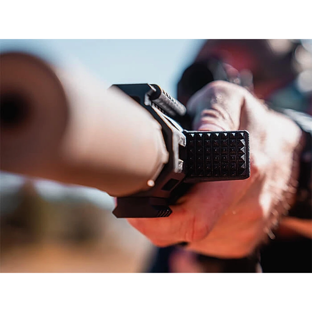 Magpul® Barricade Stop — міцний упор для руки, що дозволяє стрільцю впиратися зброєю в баррикади чи імпровізовані упори для створення стабільної платформи та точніших пострілів. Гібридна конструкція з міцного полімерного корпусу та вставки з загартованої сталевої пластини з обробкою QPQ salt bath nitride. Сталева пластина має агресивну текстуру для надійного контакту з поверхнею упору, злегка вигнута для оптимального контакту на нерівних поверхнях — стрілець може змінювати напрям пострілу, зберігаючи повний контроль.