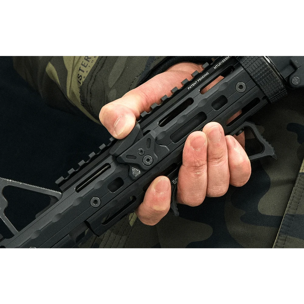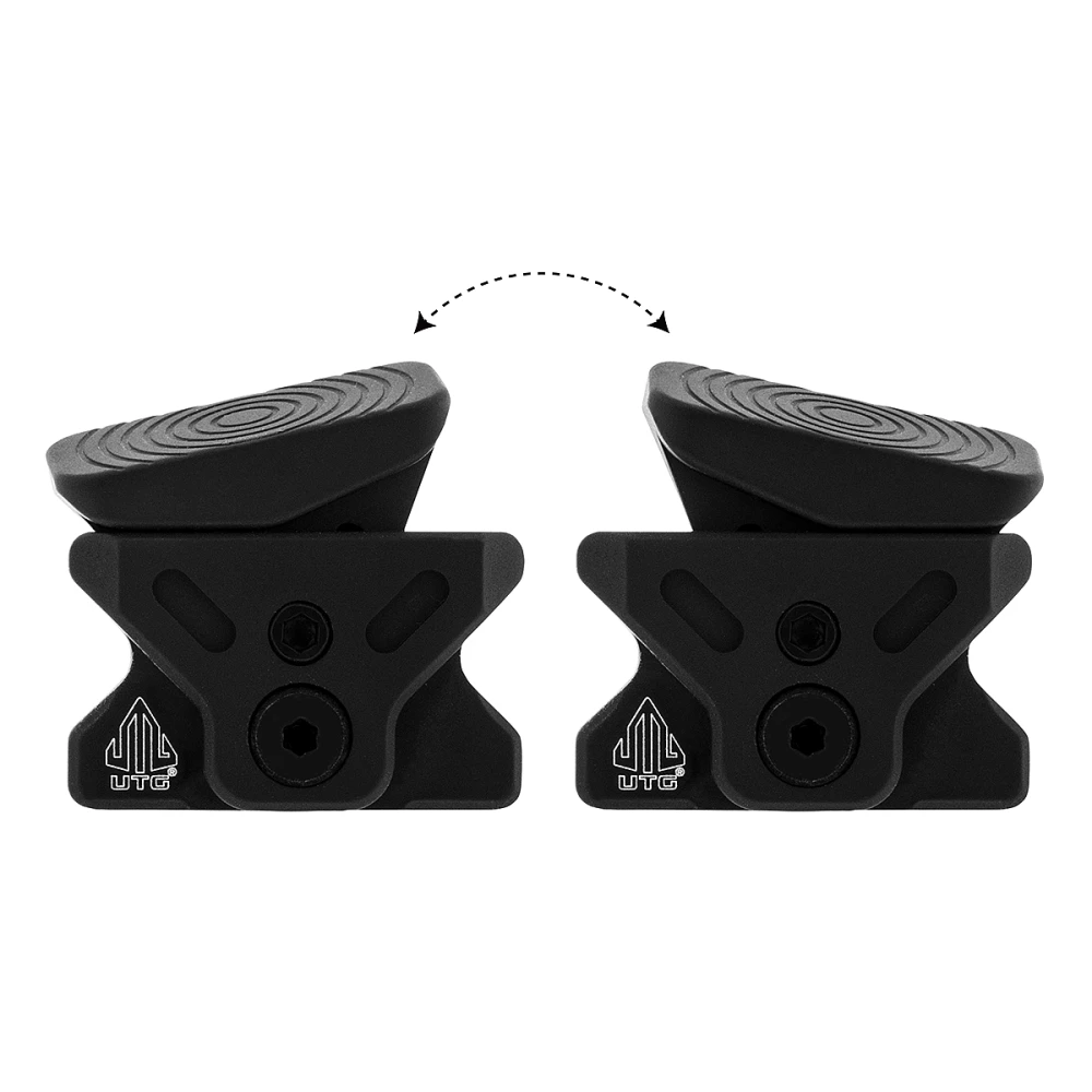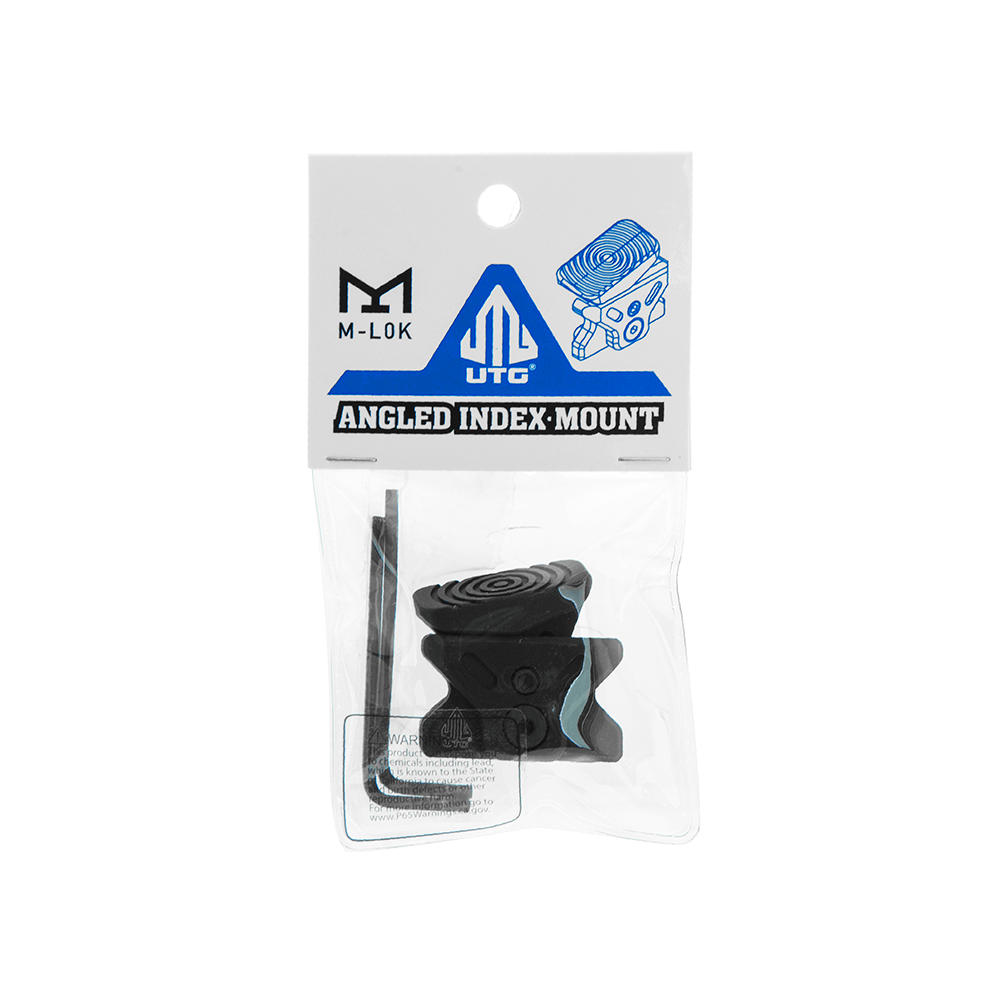 UTG® Angled Mount M-LOK® — кутовий упор для руки (hand stop) на інтерфейс M-LOK®. Двосторонній дизайн дозволяє встановлювати на лівий або правий бік цівки. Платформа для індексації великим пальцем легко конфігурується для нахилу вперед або назад. У комплекті знімний розширювач для регулювання зазору під різні профілі цівок та встановлені аксесуари.