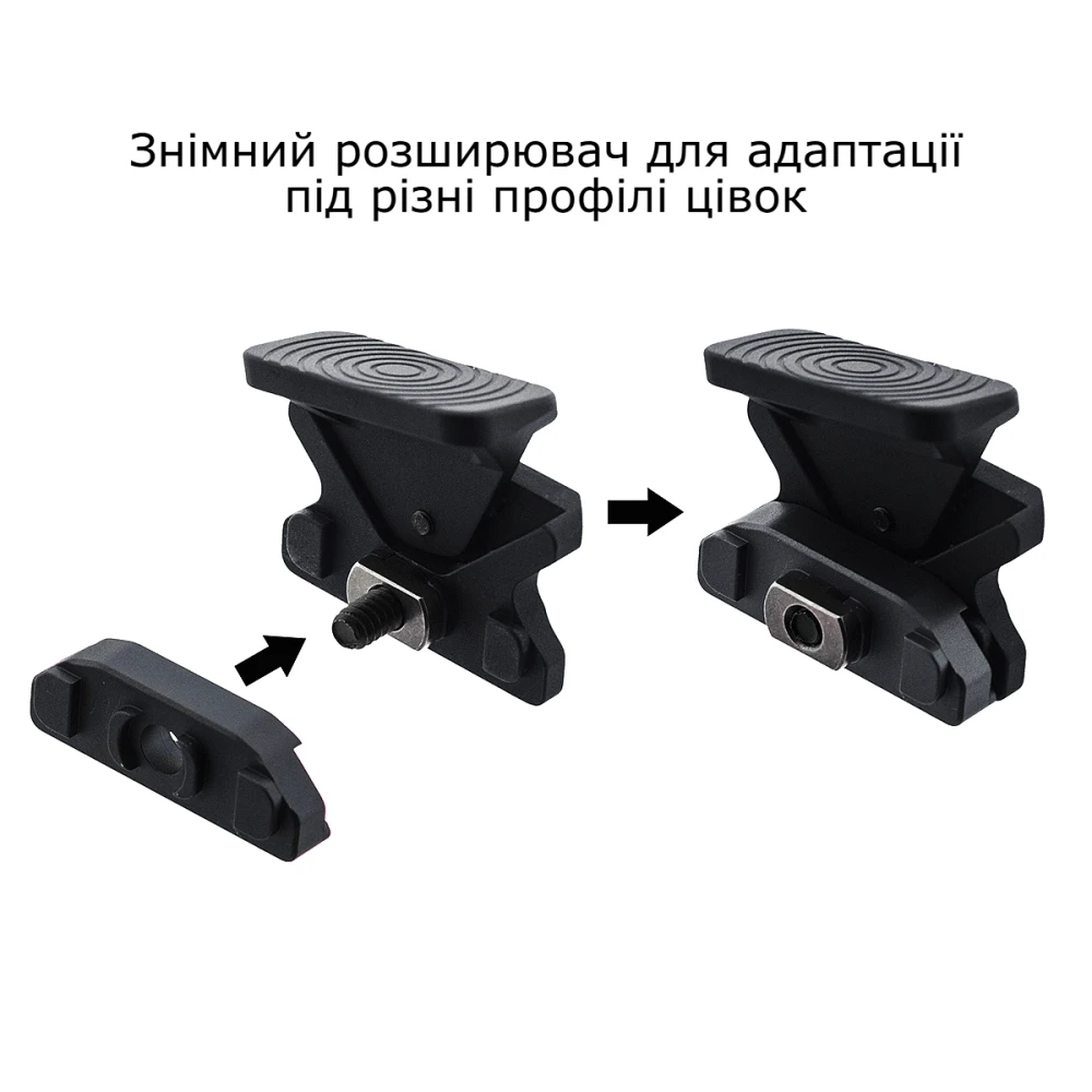 - Знімний розширювач для адаптації під різні профілі цівок та аксесуари