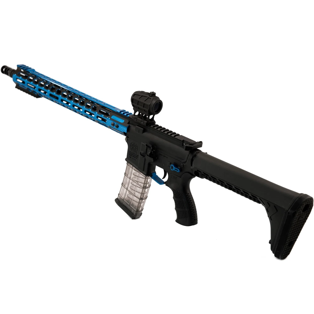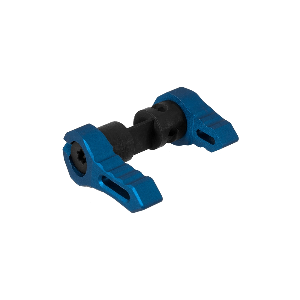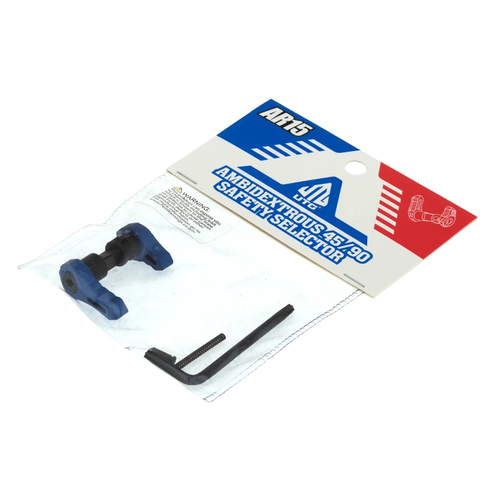 Запобіжник Leapers для AR15 — амбідекстрійний (двосторонній) перемикач режимів вогню для AR15 з можливістю налаштування кута повороту на 45° або 90°. Реверсивні важелі короткий і довгий з матовим синім анодуванням забезпечують зручне керування як правою, так і лівою рукою.
