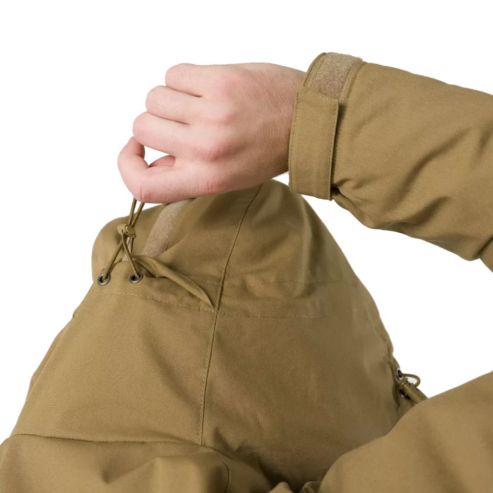 • Комбінує перевірені польові рішення: Climashield® Apex 67 г/м², міцну тканину Duracanvas, петлі з паракорду та MOLLE/PALS-пряжки, великий регульований капюшон.